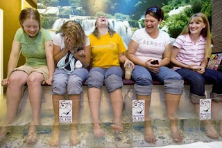 Na foto abaixo, podemos concluir que: ou o trabalho/refeição Pela expressão das moças, podemos concluir desses peixinhos que devem fazer cócegas ou causa muita aflição!!
